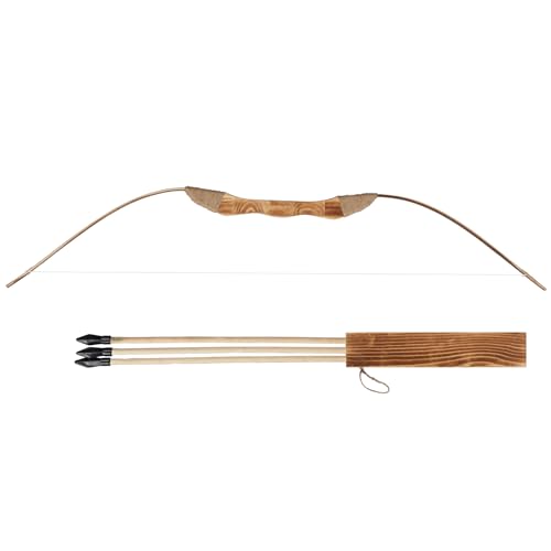 Wooden Bow and Arrow Set for Youth Beginners 100cm Longbow with 3 Wooden Arrows Practice Bow Party props