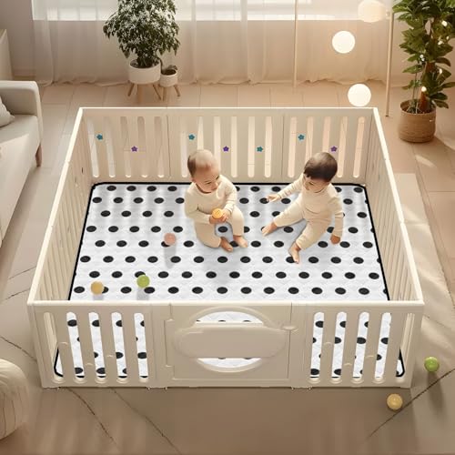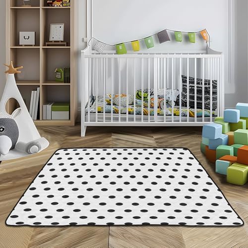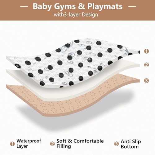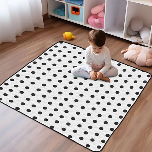 xigua Baby Play Mat – 127 X 127 cm Foldable Waterproof Baby Play Mats for Floor, Polka Dots White Black Soft Foam Crawling Mat for Babies and Toddlers Infants, Machine Washable