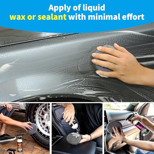 - 【High-Quality Premium Polishing Sponge】Three thick polishing pads are made of a high-quality blend of microfibre and built-in sponge, which has both the high absorbency of microfibre and the high elasticity of the sponge. The pads are ideal for applying waxes, polishes, protective agents, and care products. They are your right hand when waxing car paintwork and for all-round care of your car.