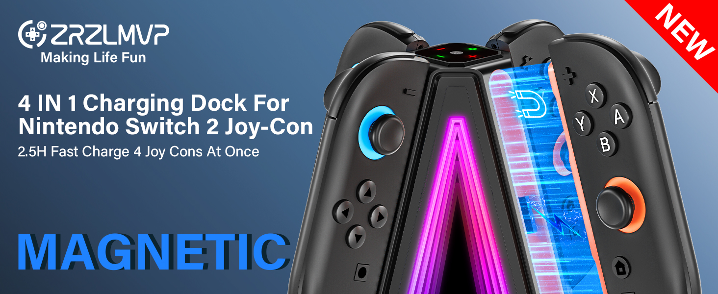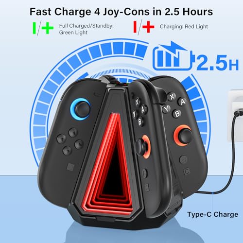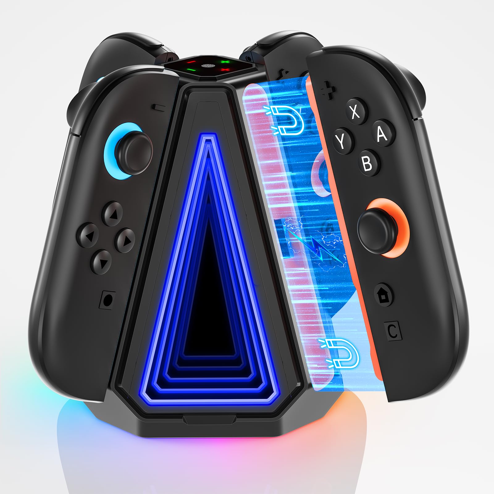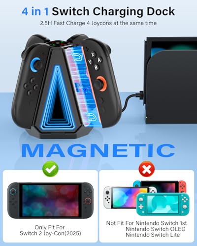 - Charger for Switch 2 Joy-Con 2025: The 4 in 1 controller charger designed for the Switch 2 Joy-con 2. The charging dock for switch can fast charge for 4 controllers simultaneously, plug and play charging. Note: Noted: Not for first generation Switch/OLED Joycons