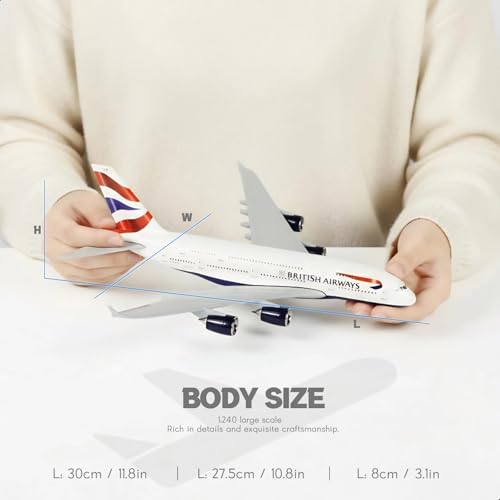 1/240 A380 Model Plane for British Airways for Airbus A380 Model Plane with Stand (12 Inch Length) Prefabricated Model Kit for Adults – Creative Gifts from Aerial Traffic