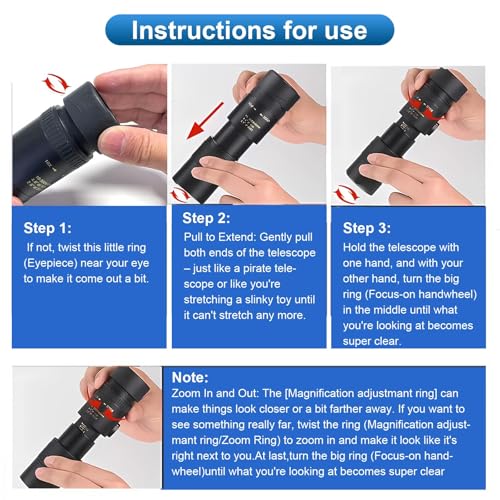 【Ergonomic & Non-Slip Grip】The monocular is wrapped in high-quality, eco-friendly rubber that is odor-free. Its surface features a detailed matte texture for effective anti-slip and sweat-resistant handling. The ergonomic design includes a dedicated thumb indentation, ensuring a secure and comfortable grip during extended use.