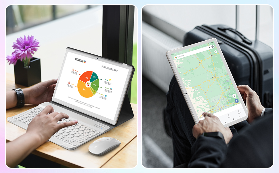 【Package Contents & After-Sales Quality】 Package Contents: PIXPEAK tablet*1, protective case*1, Bluetooth keyboard*1, mouse*1, earphones*1, charger*1, charging cable*1, OTG cable*1, instruction manual. If you have any questions, we will reply within 24 hours.