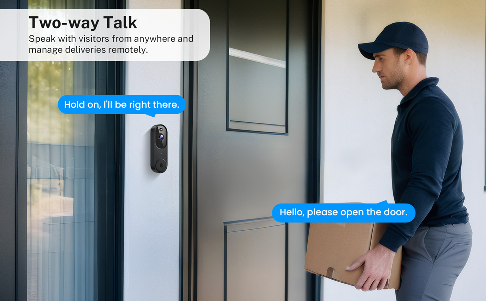 - Two-Way Audio for Instant Conversations: Talk to visitors from your phone—whether you’re home or away.