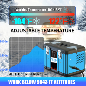 This heater, with an operating altitude of less than 9,843 feet, comes with an adjustable temperature of -104°F-122°F