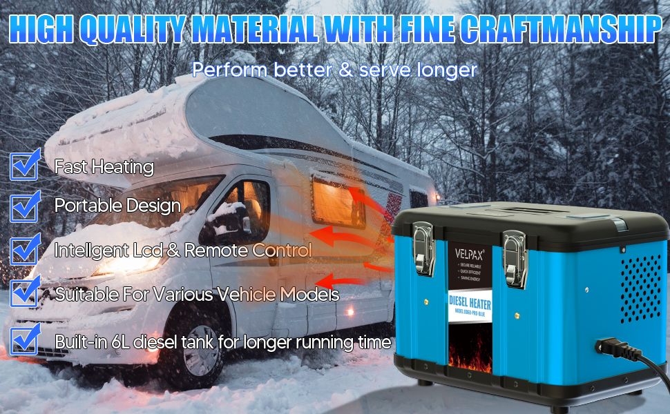 - 【low fuel consumption&Smart fuel saving】- Our diesel heater has an output of 8kw with a heating capacity of ≥90% It features built-in intelligent thermostatic control and an ultra-quiet oil pump upgrade for low noise levels ≤35dB, to ensure a comfortable sleep in motorhomes and outdoor camping, undisturbed by the cold.