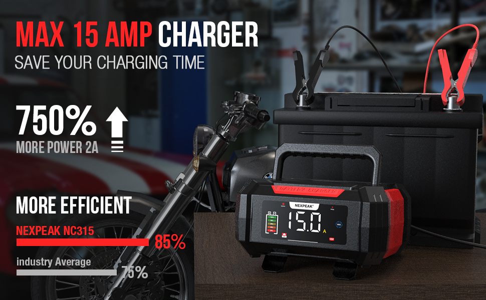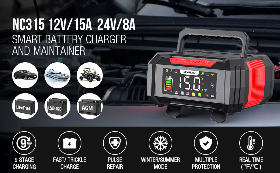 15Amp Car Battery Charger, NEXPEAK NC315 12V 15A/24V 8A