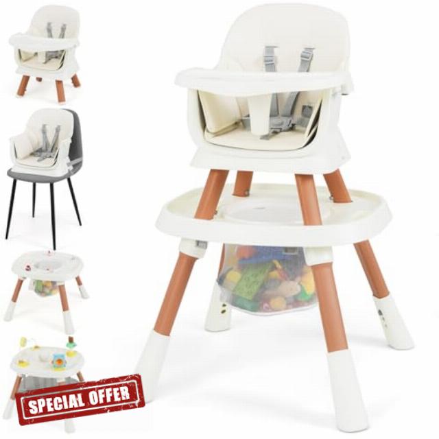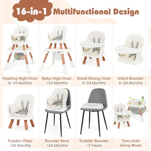 16-in-1 Design: The high chair features 16 different modes, including a feeding high chair, small dining chair, toddler chair, booster seat, small stool, kids chair, study table & chair, building block table & chair, assistive standing chair, toy storage and activity center. This infant highchair will meet kid's needs of different growth stages.