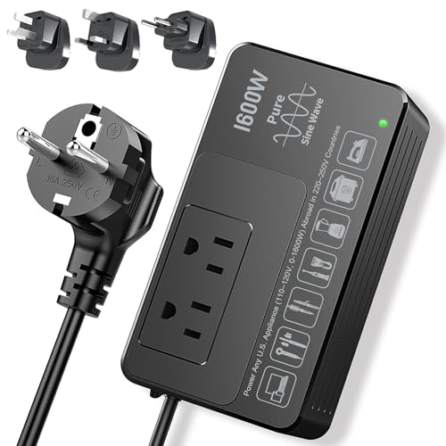 1600W Voltage Converter 220V to 110V – Power American Appliances Overseas, Pure Sine Wave, Plug & Play, No Limitations, Surge Protection – High Power Step Down Transformer US to EU/UK/AU/Asia