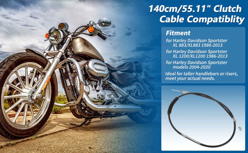 [Fitment] This clutch cable is suit for Harley Davidson Sportster XL 883/XL883 1986-2013, for Harley Davidson Sportster XL 1200/XL1200 1986-2013, for Harley Davidson Sportster models 2004-2020. This clutch cable is ideal for taller handlebars or risers, meet your actual needs.