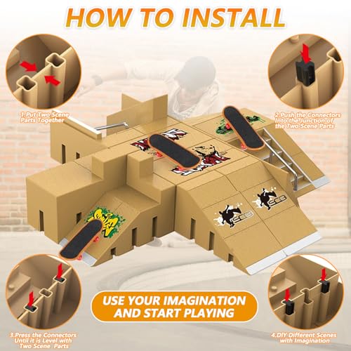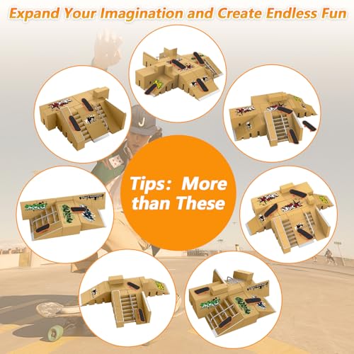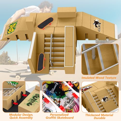 - 【High-Quality Materials, Lightweight and Convenient】This fingerboard mini skateboard set is made of high-quality ABS plastic, offering a lightweight and sturdy construction. The smooth, wear-resistant material is perfect for play. The skate park is compact and easy to assemble and carry. Whether you're relaxing at home, on a camping trip, or during recess, it quickly creates a miniature playground, allowing the joy of fingerboarding to transcend time and space.