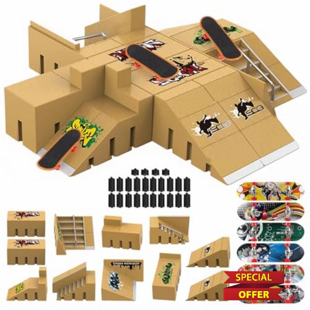 - 【Fingertip Skateboard Ramp Set】Beafaoo finger skateboard ramp Set includes 11 ramps, 6 scooters, 24 fasteners, and an instruction manual. Complete with easy assembly, it's perfect for both beginners and advanced fingertip skateboarders.