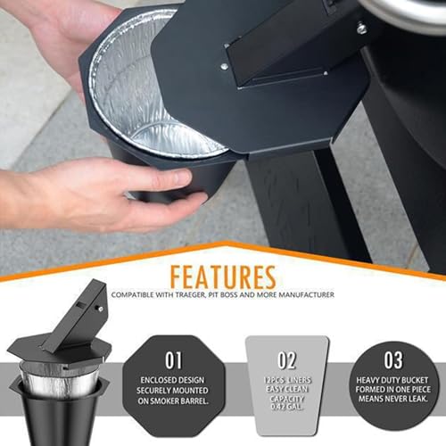 Grease Bucket for Pellet Grill-Hassle-Free Cleaning the need for scrubbing hardened grease. The disposable foil liners fit securely inside the bucket, capturing all grease and residue. When full, simply remove and discard the liner—no mess, no cleaning required. It’s the ideal solution for pellet grill owners who prefer spending more time grilling and less time maintaining