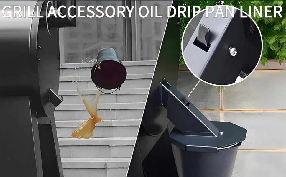 Grills Smoker Accessories-Easy Installation :Get set up in minutes—no drilling or tools needed. This set includes heavy-duty galvanized grease bucket and a pack of foil liners. Replacement liners are widely available online or in stores when needed. An essential accessory for Z Grill, and Recteq owners who value convenience and cleanliness in their outdoor cooking