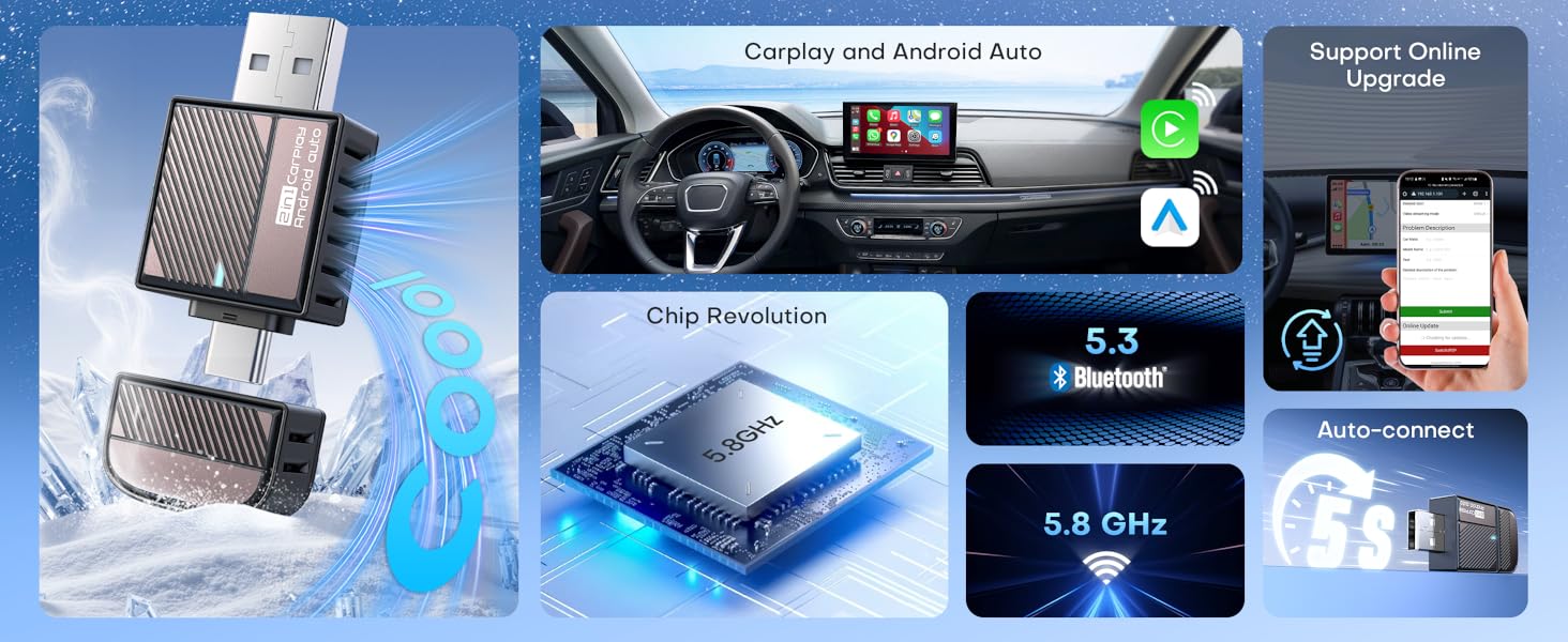 [Quality Assurance] Your purchase is protected for 12+12 months (much longer than the basic 30-day period). Our dedicated support team is here to answer any questions or concerns you may have, and we will respond within 18 hours to ensure you have a smooth and reliable 2-in-1 Wireless CarPlay and Android Auto Adapter experience. Furthermore, this wireless CarPlay adapter supports online upgrades, which can solve most device problems.