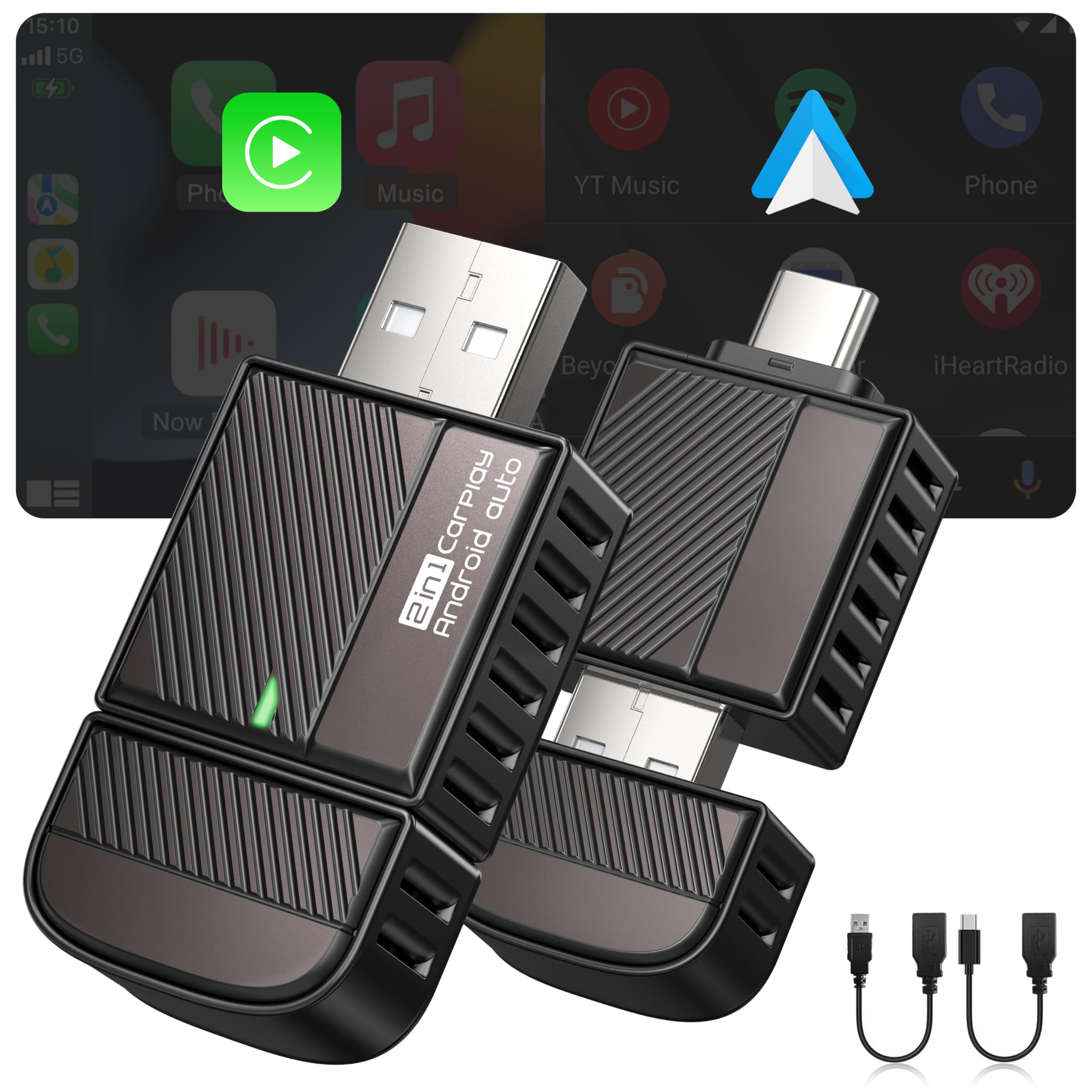 2-in-1 Wireless CarPlay Adapter UK [Mini, Latency-Free] 2026 Convert Wired to Wireless Android Auto & Car Play via USB-A/C, Bluetooth 5.3, Plug & Play Fit for 2016+ Cars, Christmas for Gift -Black