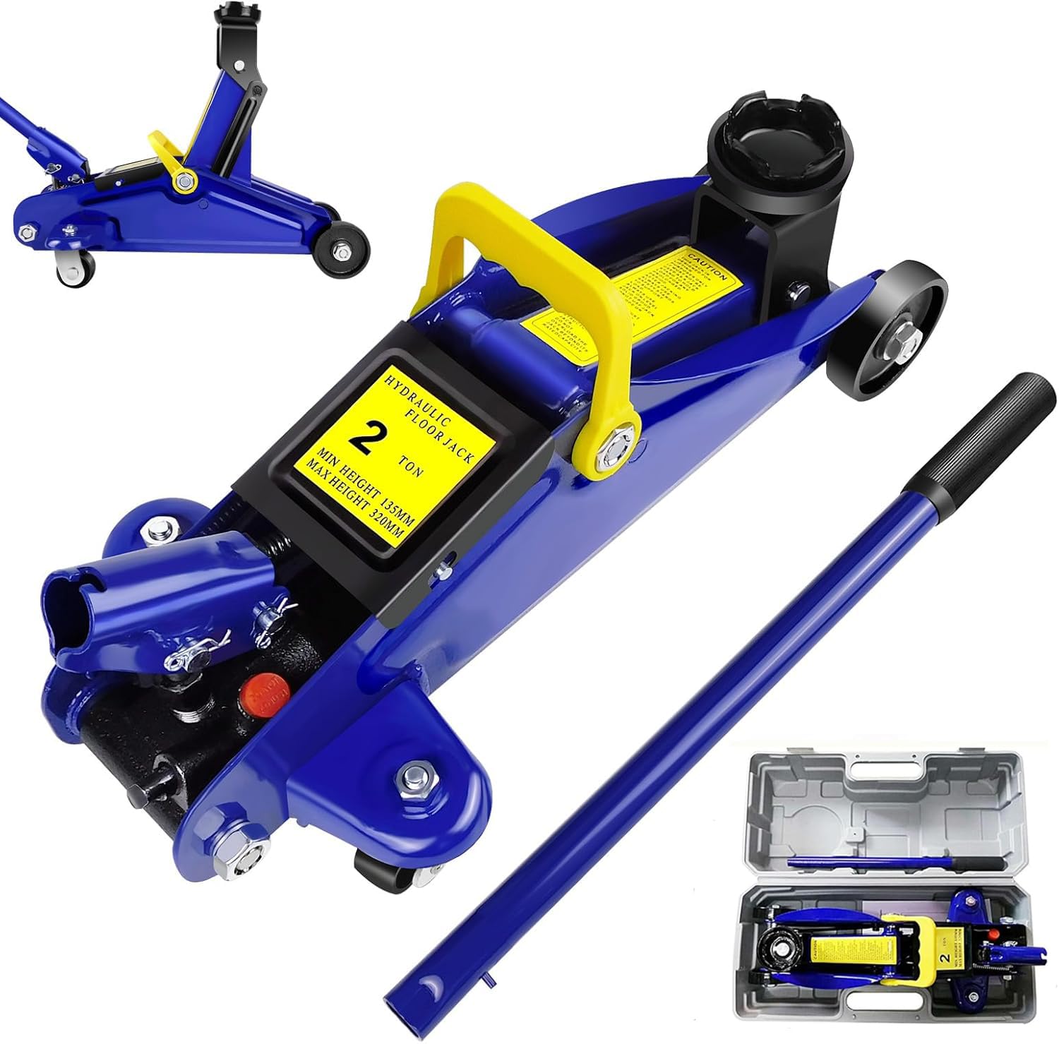 2 Tonne Trolley Jack Hydraulic Car Jack, Low Profile Floor Jack for Car Van, 4000lbs Load Capacity, Lift Range 5.3″ to 12.6″, with Swivel Casters, Carry Case (Blue)