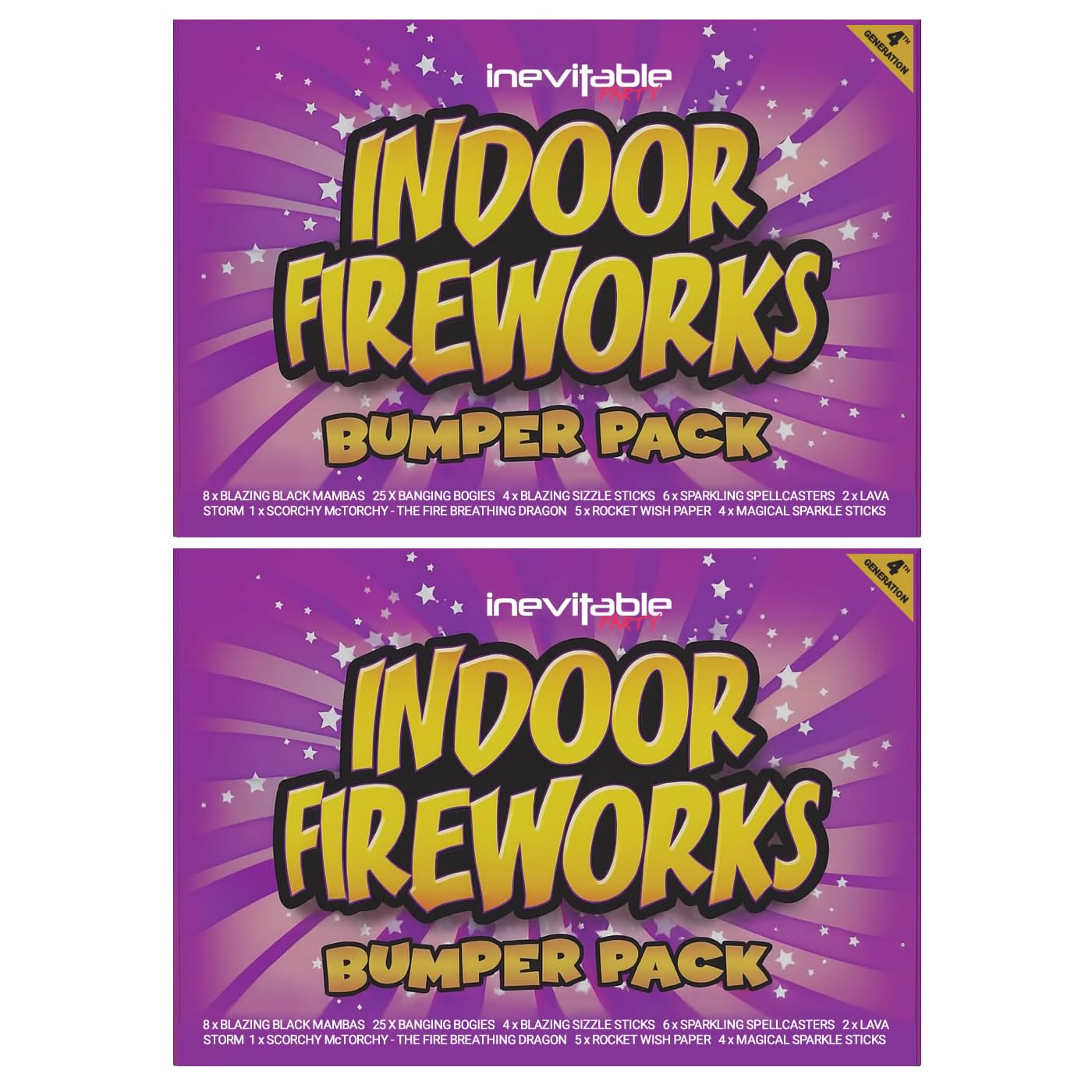 - The Indoor Fireworks Bumper Pack is a collection of nostalgic low hazard novelty retro fireworks which are perfect party starters for any occasion.