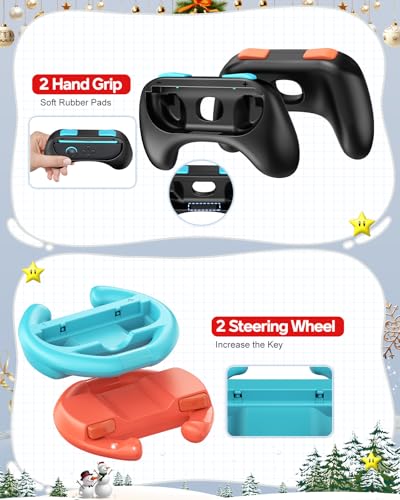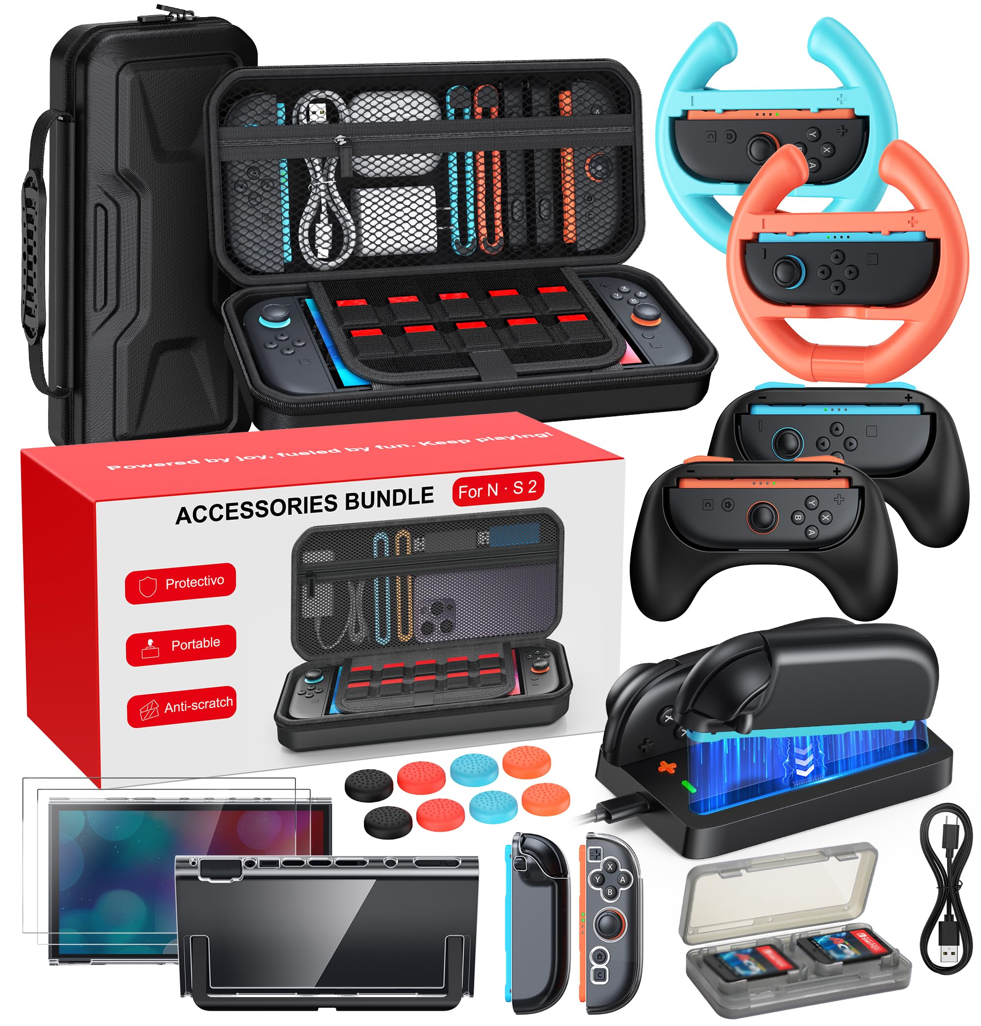 20 in 1 Switch 2 Accessories Bundle with Hard Carrying Case, Switch 2 Controller Charger, Screen Protector, Grips for Joy Con, Steering Wheels for Mario Kart, Clear Protective Cover Case(Gift Pack)