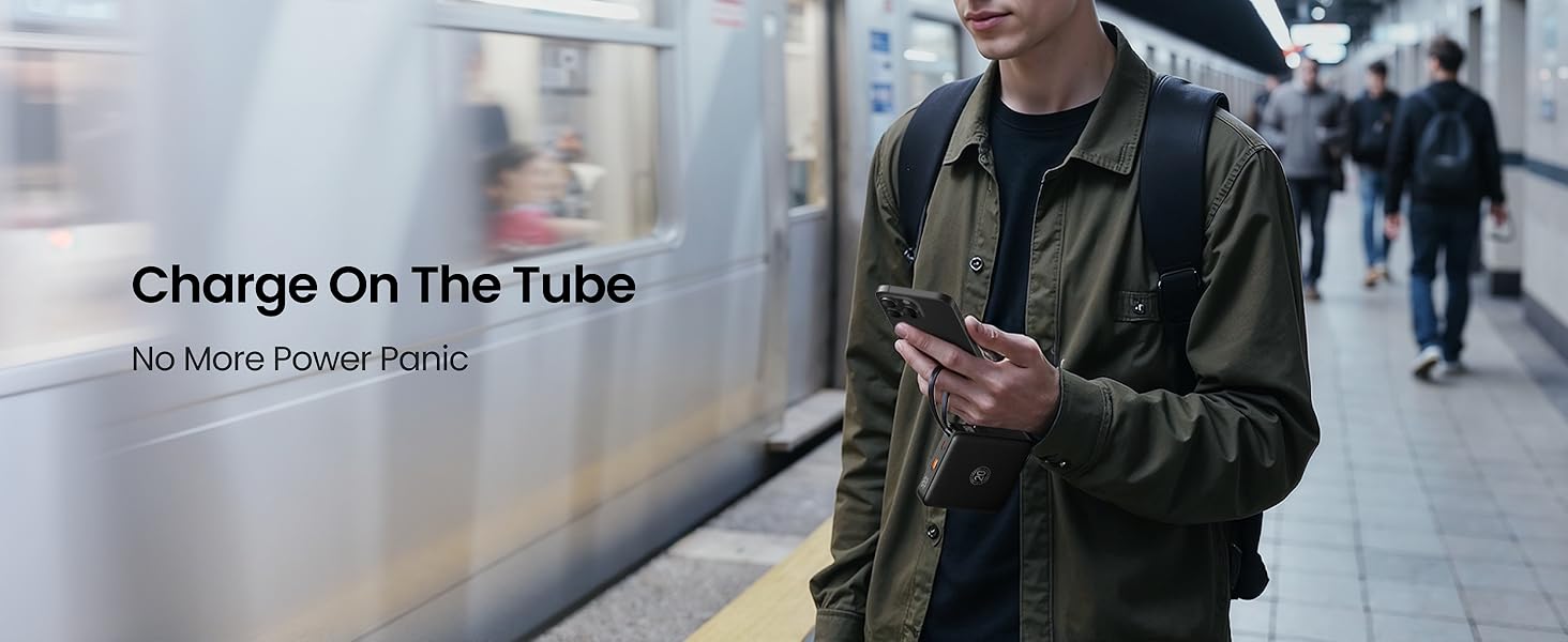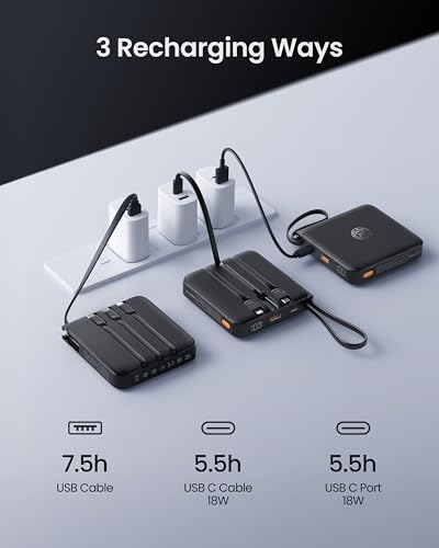 - [Amazing Fast Charging Performance] Boasting a maximum output power of 22.5W fast charging, this portable phone charger delivers impressive performance that outshines many alternatives with charging speeds. For example, it can charge your iPhone 16 Pro from 0% to 50% in just 30 minutes, making this pocket-sized powerbank a compact companion for keeping your device powered up.