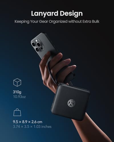 - [Pocket-sized Charging Helper] A compact power bank with dimension of 9.5cm x 8.9cm x 2.6cm and a weight of 310g won’t take up much space in your bags, backpack,or even pocket, which is ideal for keeping your gear organized without extra bulk.