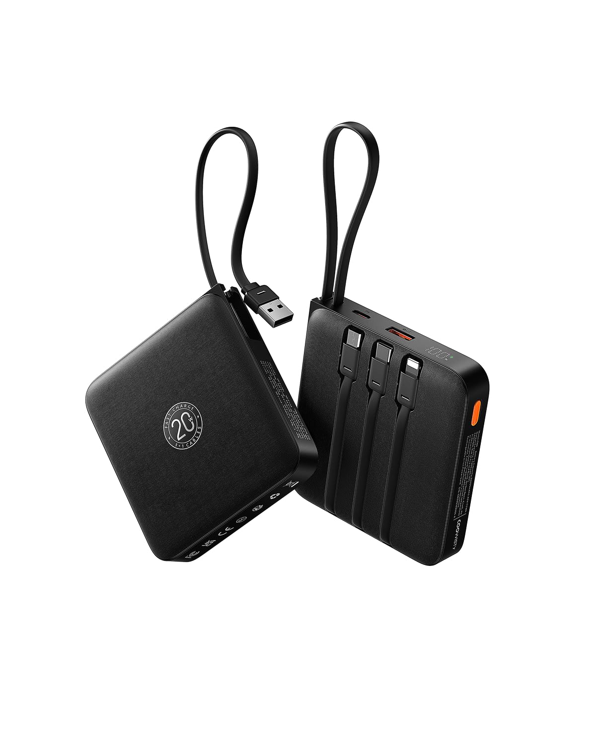 20000mAh Compact Power Bank with 4 Built-in Cables, USB C