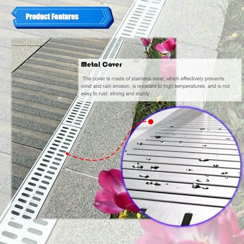- Garden Drainage Channel: Our innovative Drainage Solutions are crafted from Resin and Plastic for lasting performance. The base channel features SMC Resin material, known for its strength and break resistance. This efficient system effectively collects and disperses standing water, making it a vital component for your outdoor areas. Enhance your landscape with our reliable drainage system.