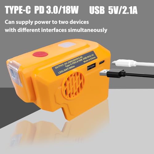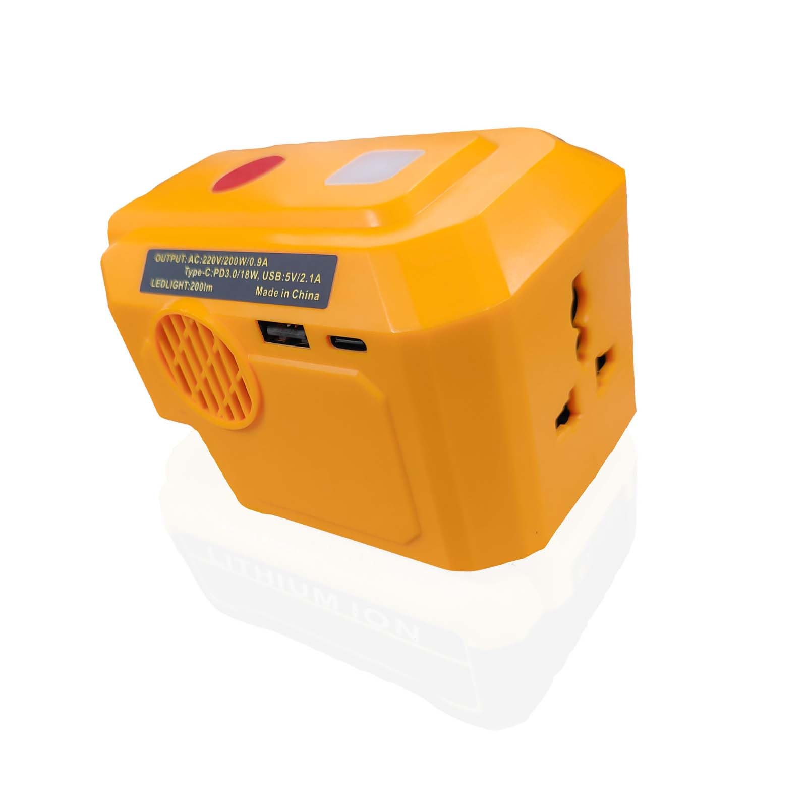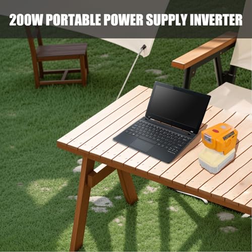 200W Portable Power Inverter for Dewalt 18V/20 Battery,DC 18V to 110V AC Output,USB and Type-C Port,200ML LED Light,for Camping Traveland Home Use