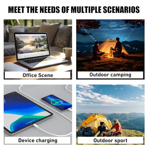 - Multi-interface portable power supply: Equipped with 110V household socket*1, 2 USB ports (including Type-C) and a 200LM LED light, it can charge laptops, mobile phones, tablets, drones and other devices simultaneously, and meet emergency lighting needs, making it suitable for travel, camping or emergency situations.