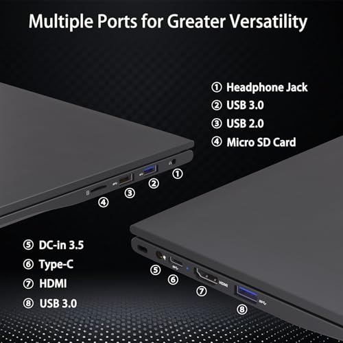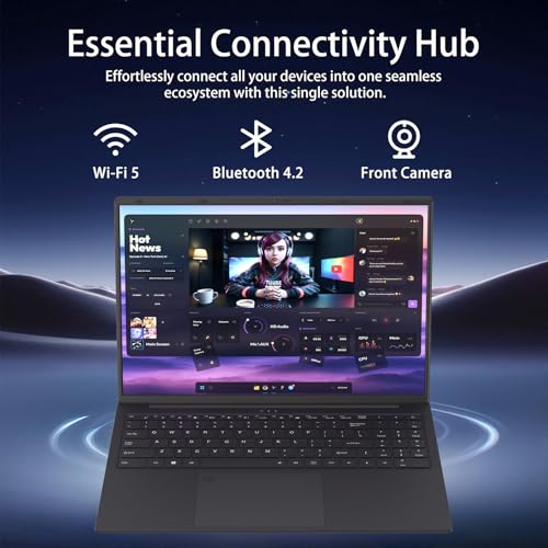 - 【STABLE WI-FI & BLUETOOTH 5.0】- Enjoy consistent and reliable wireless connections for all your online activities. This laptop computer is outfitted with dual-band Wi-Fi 5, ensuring a strong connection to your network for browsing, video calls, and streaming. With Bluetooth 5.0, you can wirelessly connect your favorite accessories, such as a mouse, keyboard, or headphones, for a convenient and clutter-free desk setup, giving you the freedom to work or relax without being tied down by cables.