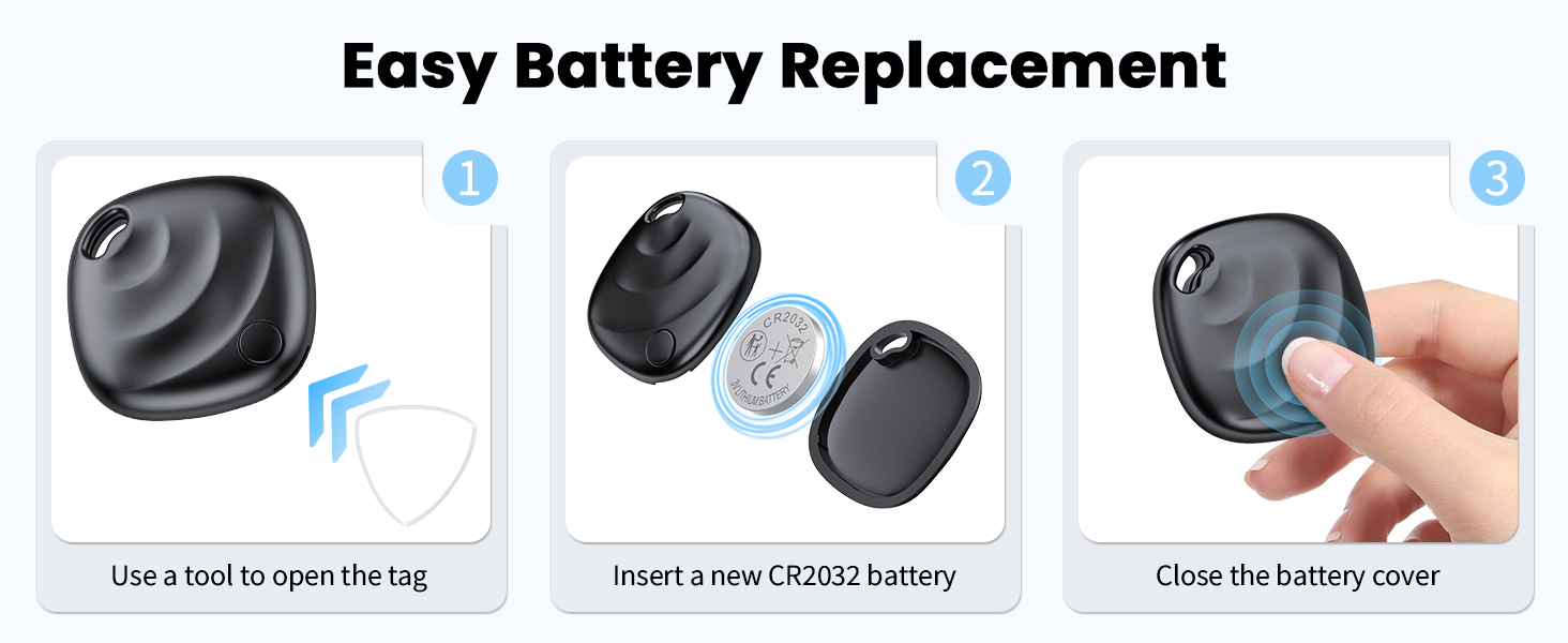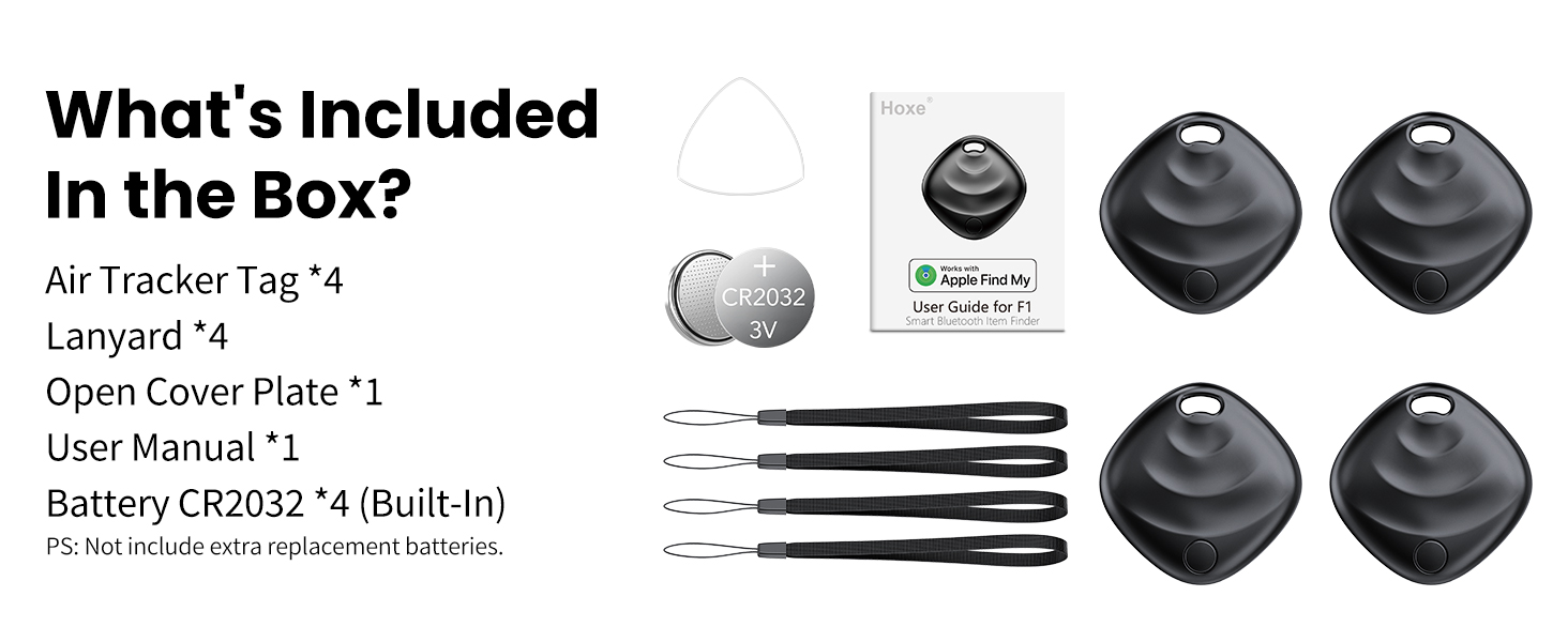 - 【REPLACEABLE BATTERY AND LONG BATTERY LIFE】: Hoxe tracking tag features a CR2032 battery and low-power chip, that enjoy up to 2 years of uninterrupted use (battery life may vary depending on temperature, signal quality, and usage frequency), you can check the battery level through the app "Find My". The unique cover design also preventing children from easily opening the cover and swallowing the button battery by mistake.