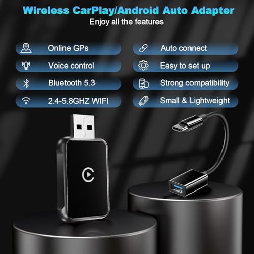 - 【Easy to connect】: After completing the adapter pairing for the first time, the adapter automatically reconnects to your device whenever you start your car—no need to manually reconnect. For added convenience, we include both USB-A and USB-C to ensure compatibility with various car port types.