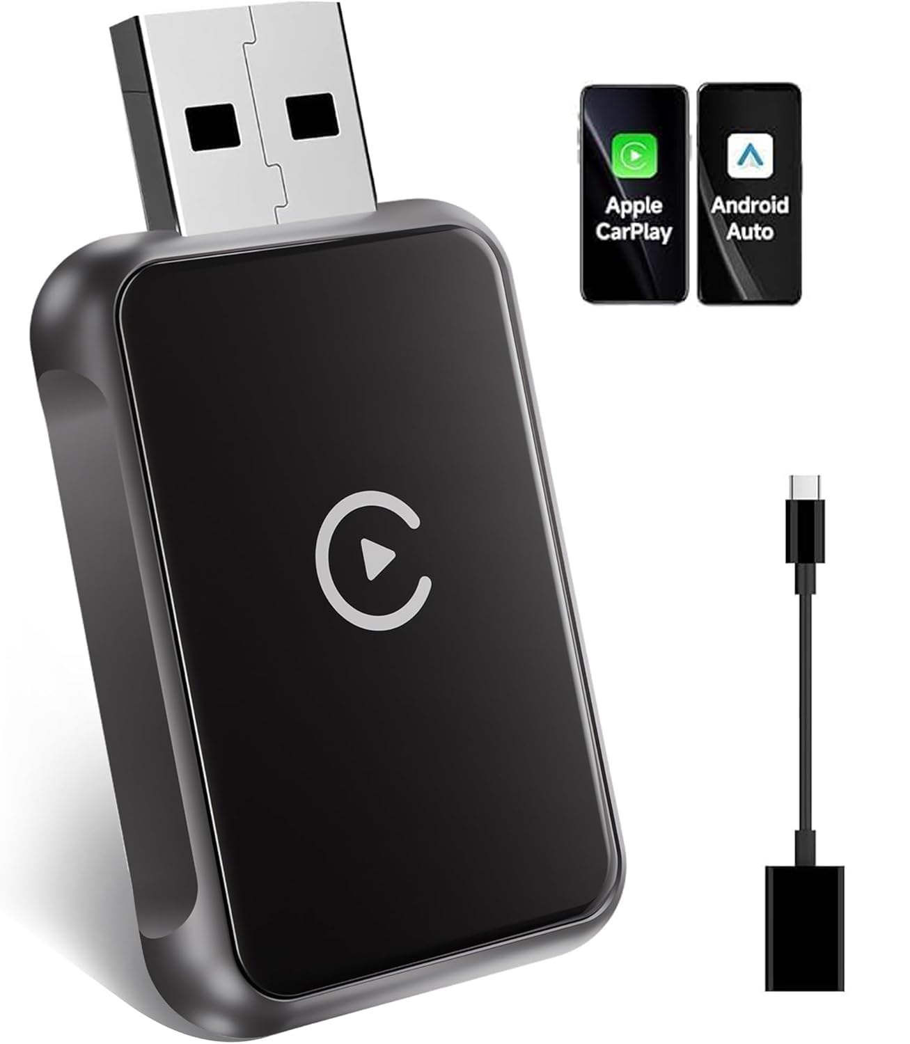 2025 Upgraded 2-in-1 Wireless CarPlay, Compatible with Apple Carplay & Android Auto, Fast Auto-Connect Wired to Wireless Car Play Adapter, Wifi 5.8GHz Plug & Play, Supports USB and Type-C (Black)
