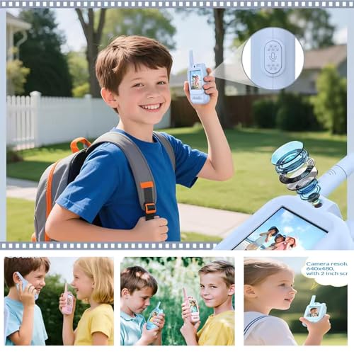 2026 Video Walkie Talkies for Kids, 2 Pack Rechargeable Long Range Kids Walkie Talkies with HD Camera, Voice Changer & Screen Display, Gifts for Boys Girls Ages 3-12 (blue)