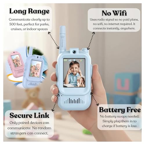 - Perfect Gift for Boys & Girls: Packaged in a colourful gift box, this blue and pink walkie talkie set makes an ideal birthday, Christmas, or holiday present. Encourage teamwork, creativity, and bonding through playful video communication.