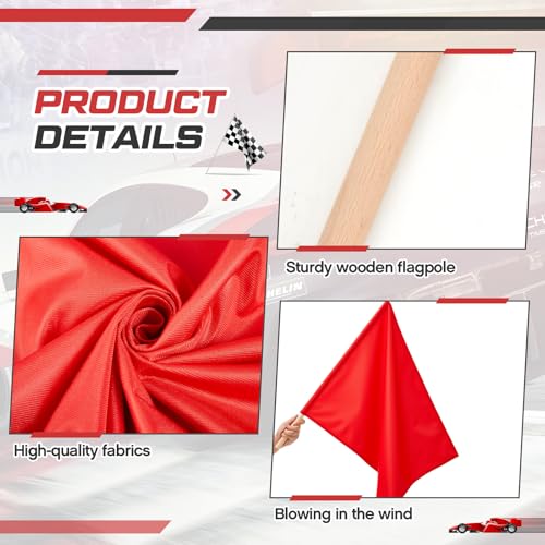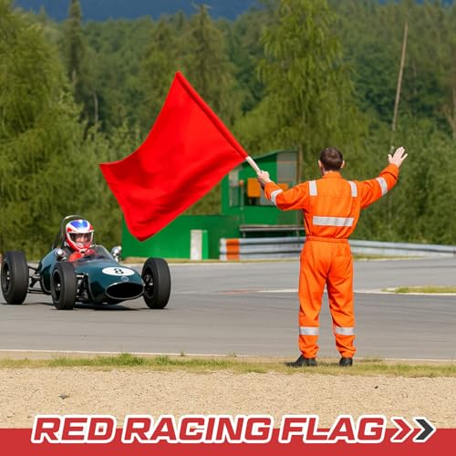 24×30 Inch Red Racing Flag with 30″ Pole – Auto Racing Sports Flags for Track Events, Athletic Competitions, Outdoor Sports, Polyester with Reinforced Edges(Classic)