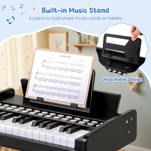 Thoughtful Details: Our kids digital piano prioritizes safety for active little learners, featuring anti-slip foot pads that keep the instrument stable during play, rounded corners to prevent bumps and scrapes. Besides, the built-in and detachable music stand is ideal for holding sheet music, song cards, or even a tablet.