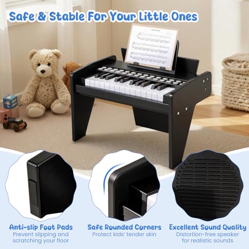 25 Key Kids Piano Keyboard, Toddler Electronic Keyboard with Detachable Music Stand, Lighted Keys, Record, Educational Toy Instrument Music Piano for 3+ Years Old (Black, 38x23x27cm)