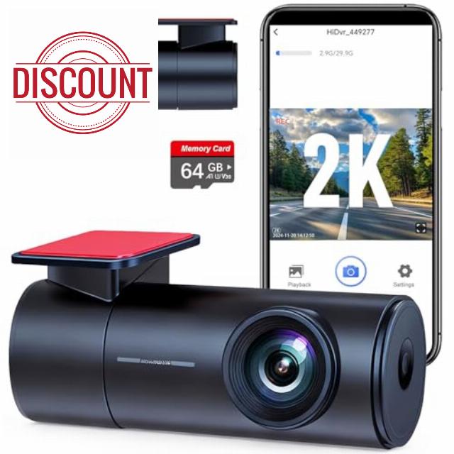 2K Dash Cam,Dash Cam Front with UHD 1440P, DashCam Built-in WiFi, 24H Parking Monitor,140° Wide Angle,Night Vision,WDR,Loop Recording,G-Sensor,DashCam Includes 64GB SD Card