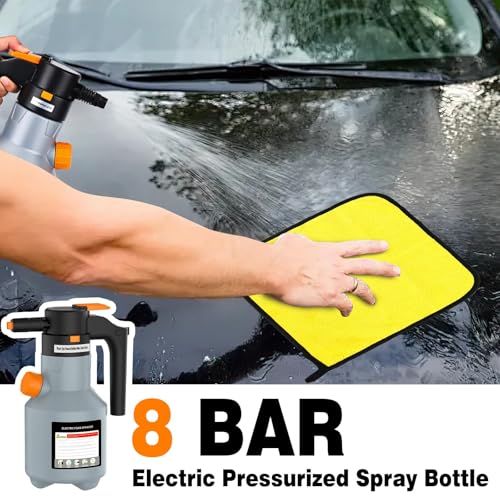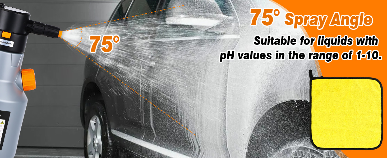 - 2L LARGE CAPACITY: The battery operated pump sprayer has a large 2L capacity, and the jug comes with a graduated line that allows you to easily see the remaining capacity of the liquid, so you can refill it at any time. With the side refill measuring cup, it makes the ratio of car wash liquid and water more accurate, and won't leak when tilted or shaken
