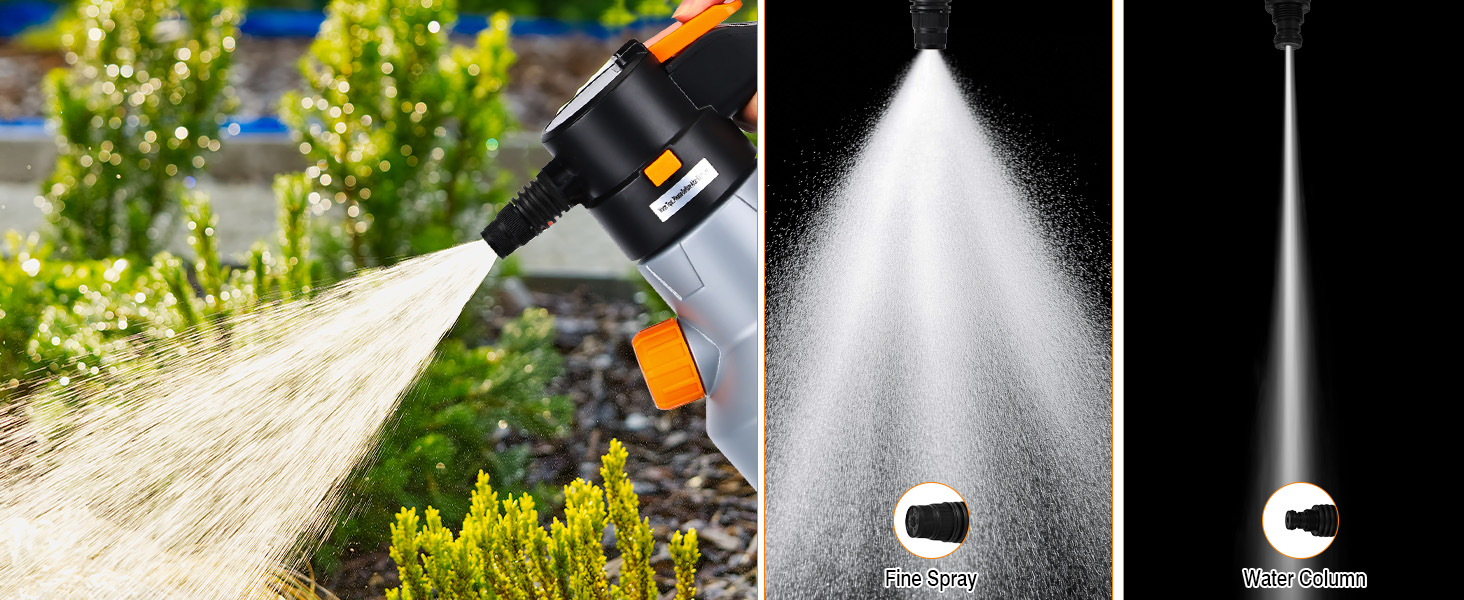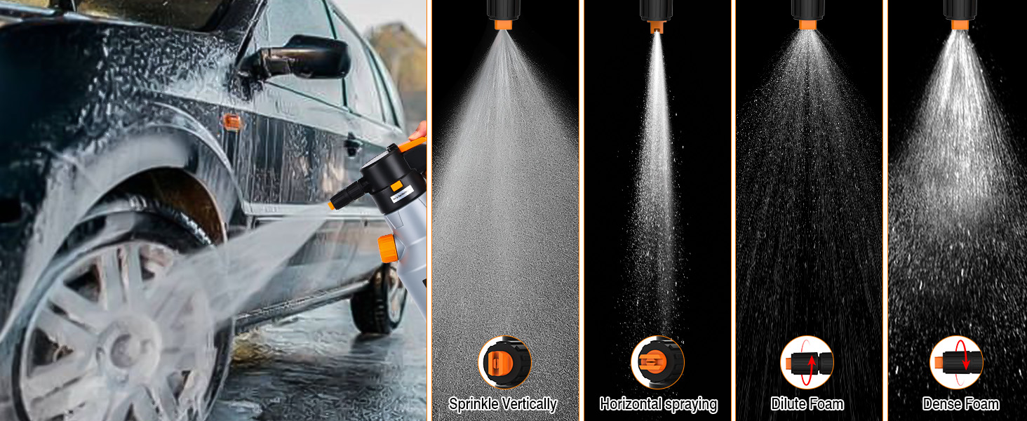 - ADJUSTABLE NOZZLES: The snow foam pump sprayer comes with two interchangeable foam and water nozzles. Foam mode ensures even and dense foam coverage, which greatly speeds up cleaning and improves cleaning results. The shower mode provides a fine mist and a direct stream of water for garden watering and glass cleaning in one pot