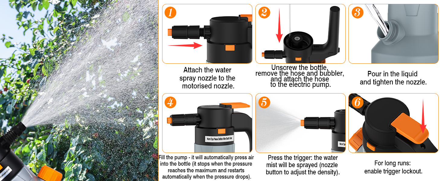 - SAFE TO USE: The electric pressure sprayer is made from a combination of PE+PP material and electronic components, providing excellent durability and corrosion resistance. Whether it is in contact with cleaning liquids or exposed to outdoor environment, it can maintain good performance. With the pressure relief valve, it ensures the safe use of the electric foam sprayer. When you need to refill the liquid or finish using it, you need to press the pressure relief valve to release the pressure