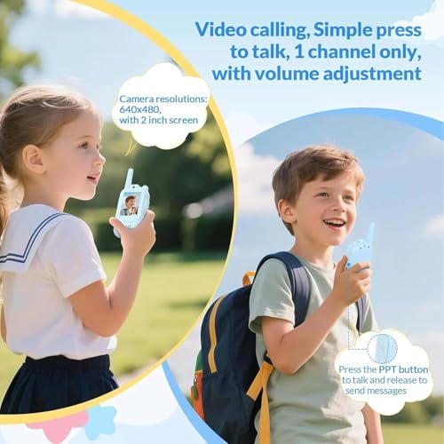 - Easy To Use: Designed for small hands. Each walkie talkies are lightweight (only 63g!) and recharge quickly, providing up to 7 days of standby time. Whether they're chasing each other around the garden, on a family outing, or playing in different rooms, the clear 2-inch video screen lets them share moments, not just chat.