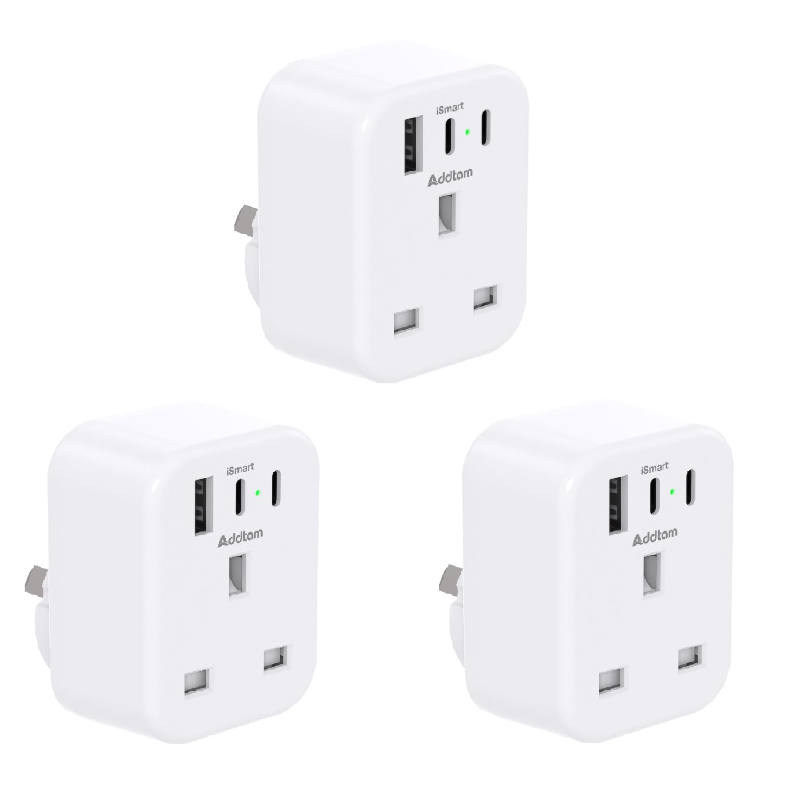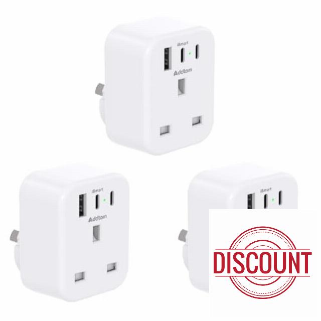 3 USB ports ( 2 USB-C & 1 USB-A), a total output of 5V/3.1A and standard UK plug with maximum capacity of 3250W.