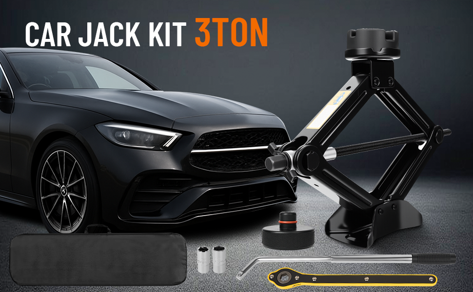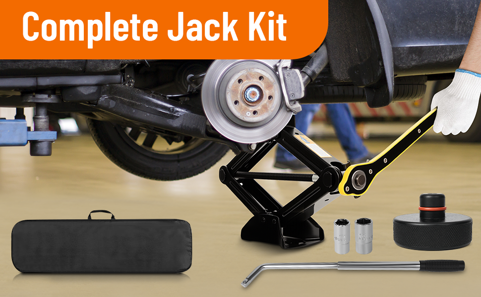 【 Lightweight, Portable & Easy to Operate】Convenient to carry and use. The ratchet handle can quickly and easily lift your car, and the non-slip rubber pads protect your vehicle from scratches. This jack kit is a must-have for anyone who needs a reliable and easy-to-use tire changing solution.