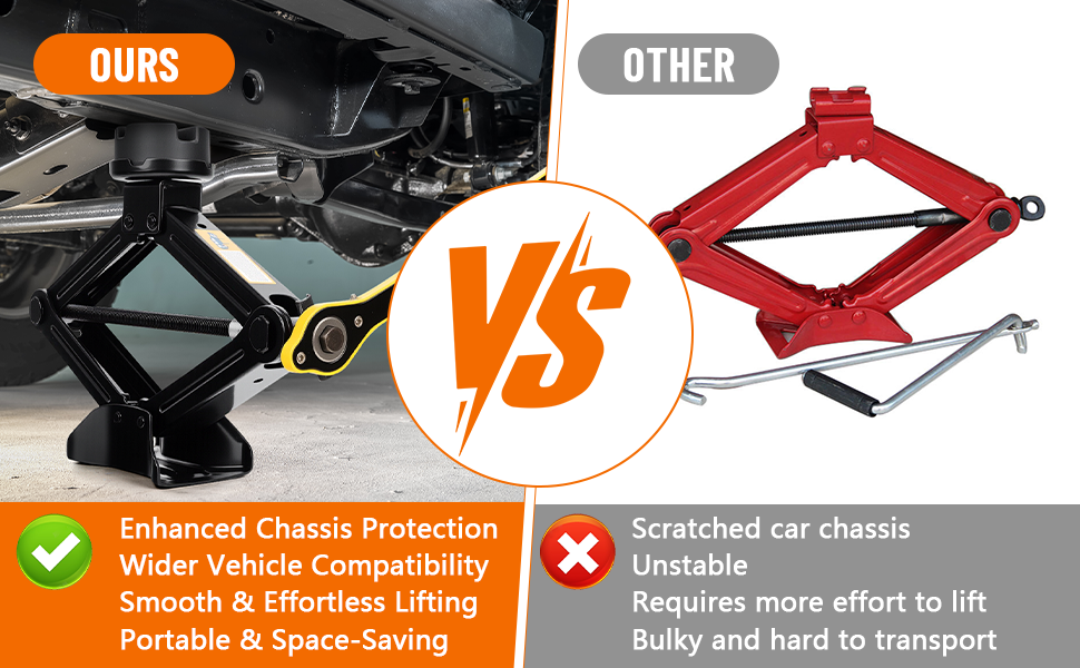 【2.5 Ton Capacity for Versatile Use】This scissor jack offers a robust 2.5-ton lifting capacity, making it ideal for small to medium-sized vehicles such as sedans, SUVs, and hatchbacks. Whether you're using it for a tire change or basic maintenance, this car jack ensures optimal support and reliability for everyday use.