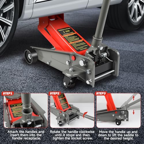 【Sturdy and Durable】LARBANKE 3Ton hydraulic car jack is made of high-strength carbon steel, which combines the characteristics of heavy load capacity and excellent durability. The heavy-duty steel frame has undergone rigorous testing to ensure durability for professional maintenance and household use.