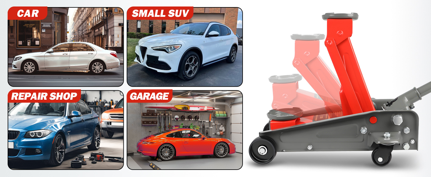 【Heavy Load Capacity】 LARBANKE 3 ton heavy duty car jack can safely lift up to 6600 pounds/3 tons of weight, with a suitable height range from 135mm to 460mm, perfectly suitable for multiple model such as cars and etc. greatly meeting diverse lifting needs.