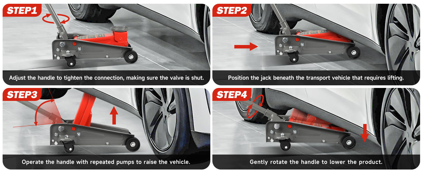 【Unique Detail Design】The LARBANKE car jack is equipped with a large saddle that provides maximum protection for your vehicle; The handle of our floor jack has two sections , which is convenient for installation and storage. The top of the handle uses rubber material to better improve your work efficiency.