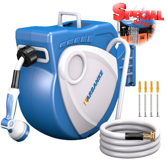 10-functional spray nozzle: the LARBANKE garden hose reel is equipped with a professional multifunctional nozzle that provides 10 precise water spray modes. Whether you want to water your garden, wash your car or clean your yard, simply switch between the different jet modes, the water flow can be optimally adapted to any task.
